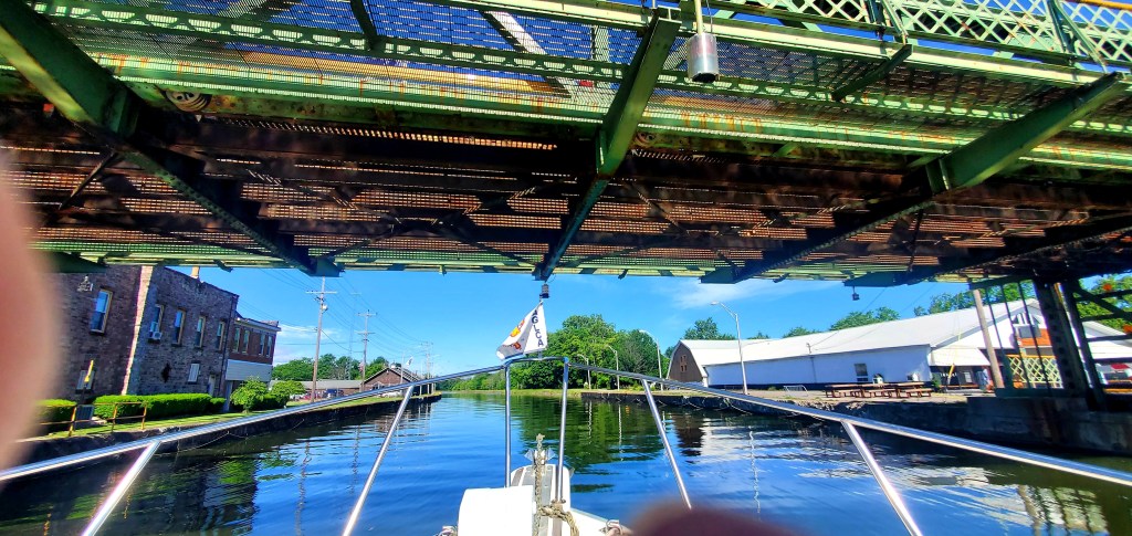 Knowlesville Lift Bridge (MM298), 7th of the day. It’s become routine by this time. The bridge operators ask us our destination and talk to each other about who’s coming up the canal,
