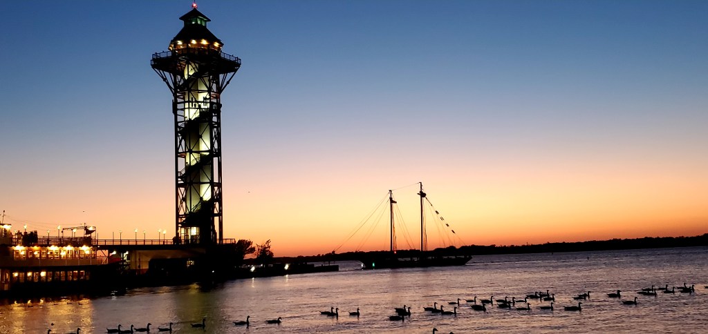 Bicentennial Tower, on the waterfront of Erie, Penn., very close to our marina. See the schooner in background and geese in foreground?