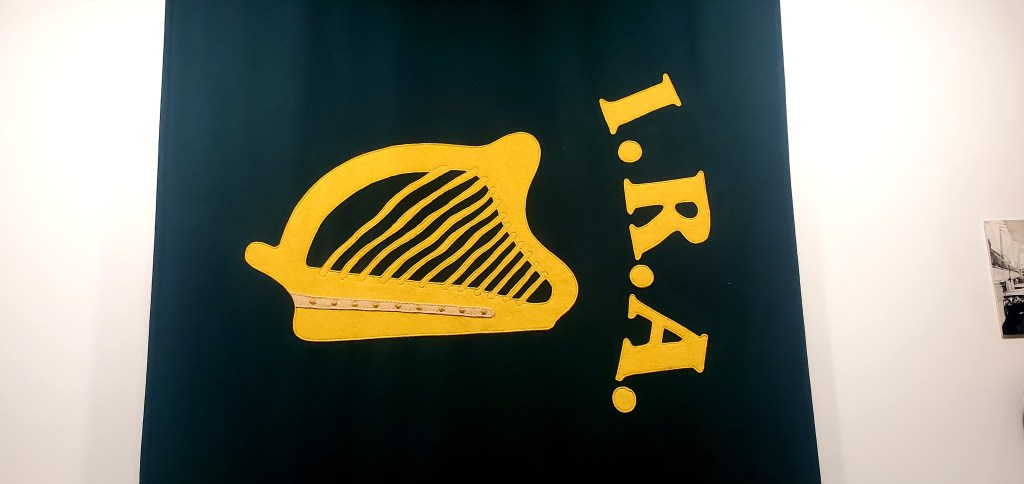I didn’t know the Irish Republican Army tried to use the U.S. as a launch to invade Canada! (I’m not sure it was “the” IRA.) These Irish Americans were called the Fenian Brotherhood and this was their flag. They really did try to invade Canada as a means to put diplomatic pressure on Great Britain. It failed.