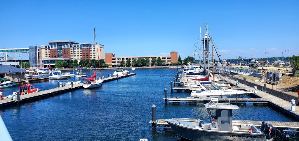 At first glance, Erie, Pa. seems like nothing special. But as with many cities and towns, you discover more as you get below the surface — especially when you have a great museum and gorgeous beaches nearby. Photos and captions of our continuing stay here, at both marina and anchorage, below.