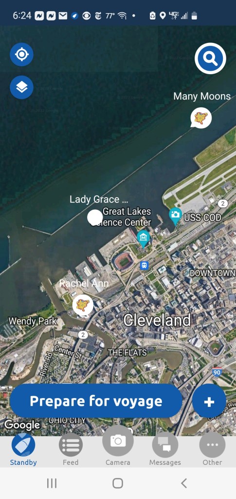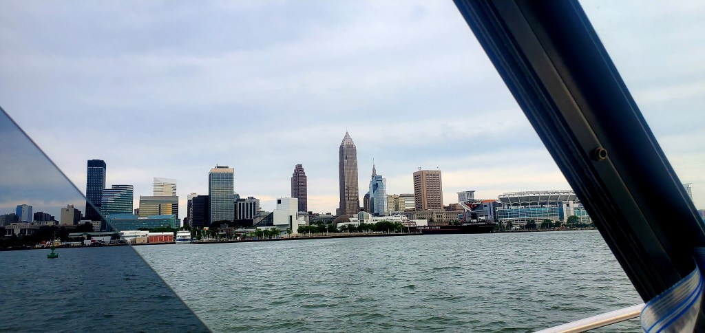 Getting closer to Cleveland as we cruise inside the seawall. Who knew that approaching Cleveland could be exciting? On my many car trips from Virginia to Michigan, I’ve always flown past exits marked “Cleveland.”