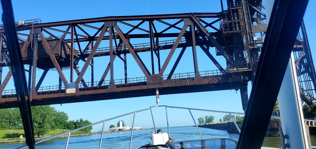 The next morning, Norfolk-Southern Railroad Bridge had to open for us before we could head back into Lake Erie to aim for a small town called Huron, almost 50 miles west. After Cleveland, we were ready for a smaller town…