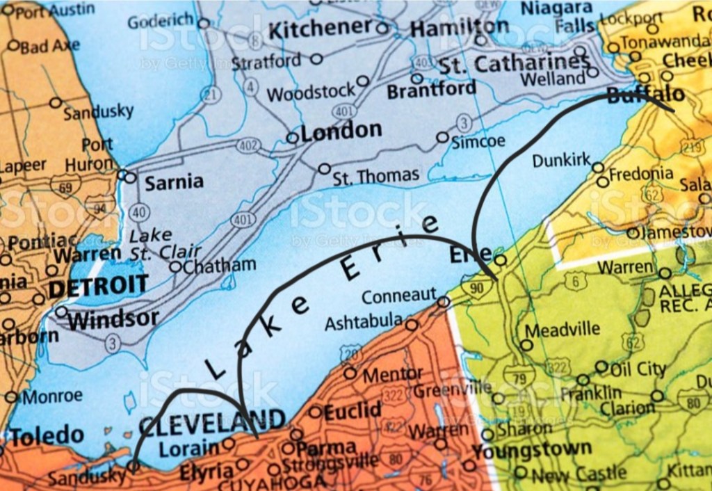 We are now 235 miles into our carefully-planned westward progress across troublesome Lake Erie – troublesome (for boaters) because of its weather challenges. If we went straight down the middle, we would be almost out of the lake by now since it is 241 miles long, measured east-to-west. But only fast or large boats, and maybe adventurous sailboats, go down the middle. In doing so, they miss the nice shoreline surprises that are part of The Great Loop. (We missed a lot of them, too, in our long runs west.)