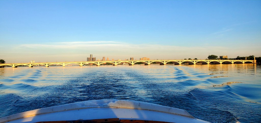 We pushed against two rivers on the cruise northward from Detroit to Port Huron, and crossed one lake in between, as I continue to learn new things about my home state. We left Detroit at 0600, knowing it would be a long push. It was, taking 9.5 hours to travel 62 miles.