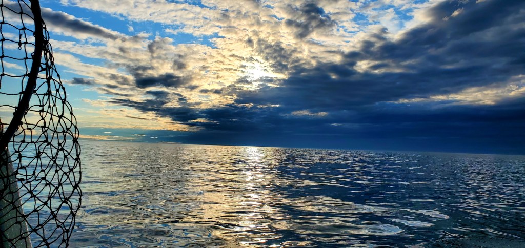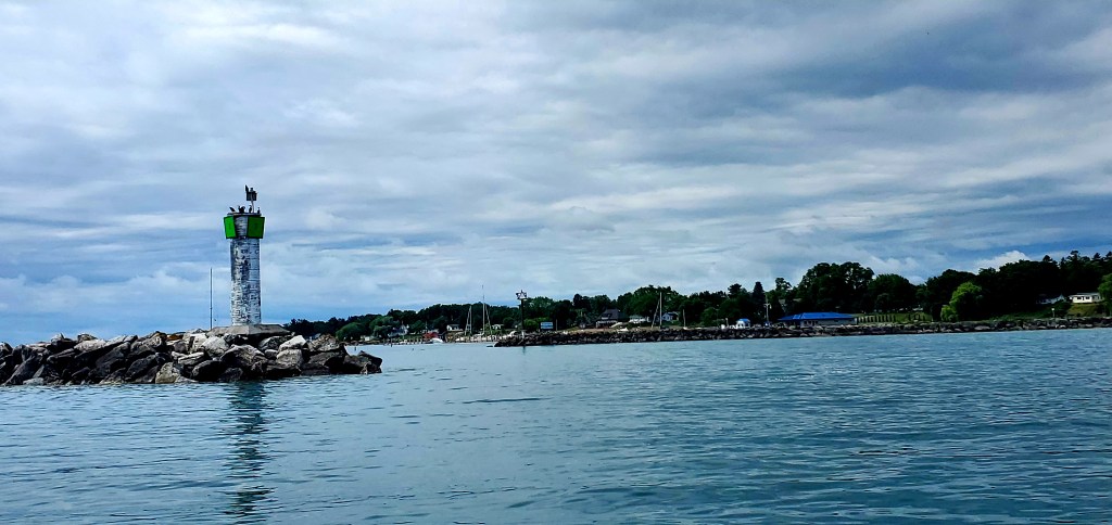 Skies began to clear as we crossed Saginaw Bay but I watched them carefully and checked my weather apps too often. This is what happens after you rely on weather-app accuracy (as we did a few days ago) and end up in high seas anyway. I’m still not sure if it was an accuracy issue, our own miscalculation, or an eagerness to move when the wiser course was to stay. Maybe a bit of all three. But our eventual crossing was smooth.