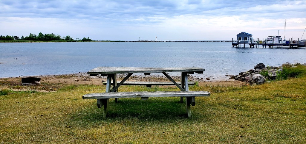 This marina is a great shape, complete with picnic tables along the shoreline.