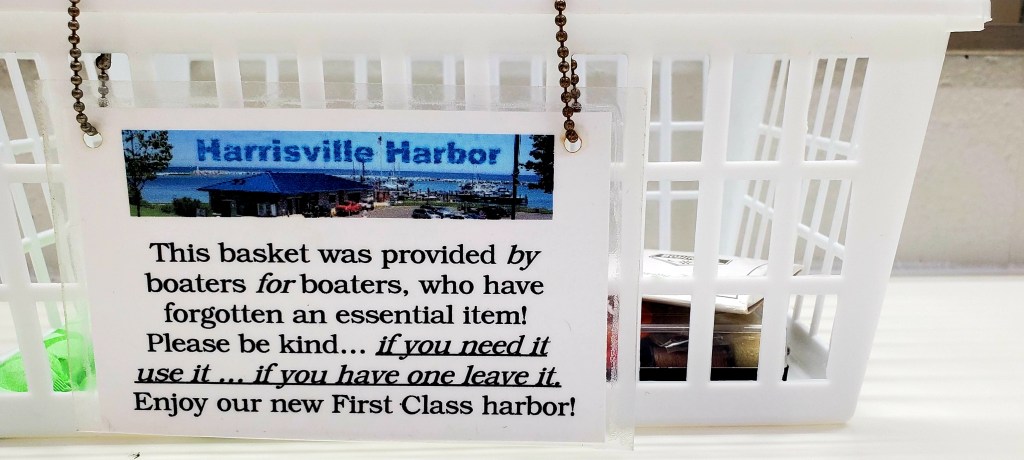 It even has toiletries baskets in the bathroom, for boaters to share with each other — and a take-one/leave-one library in the boater’s lounge.