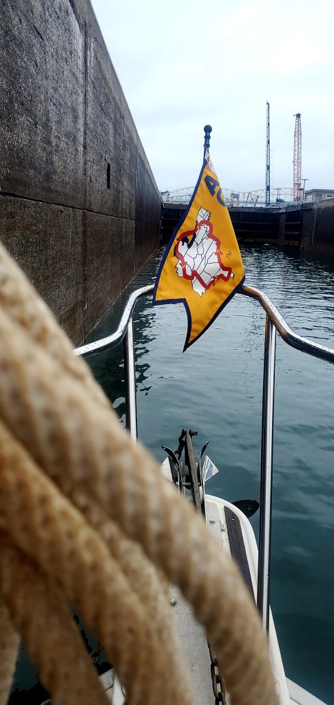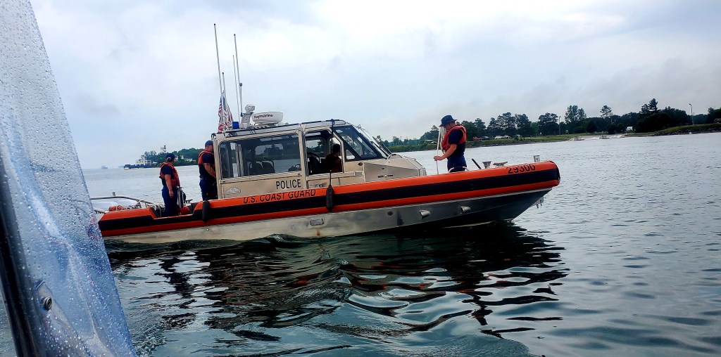 Another encounter with the Coast Guard. (We’ve had several in a few years. Something about this boat invites inspection.) This time, I passed our inspection report from last month over the water and we were not boarded, since only one inspection per year is required.