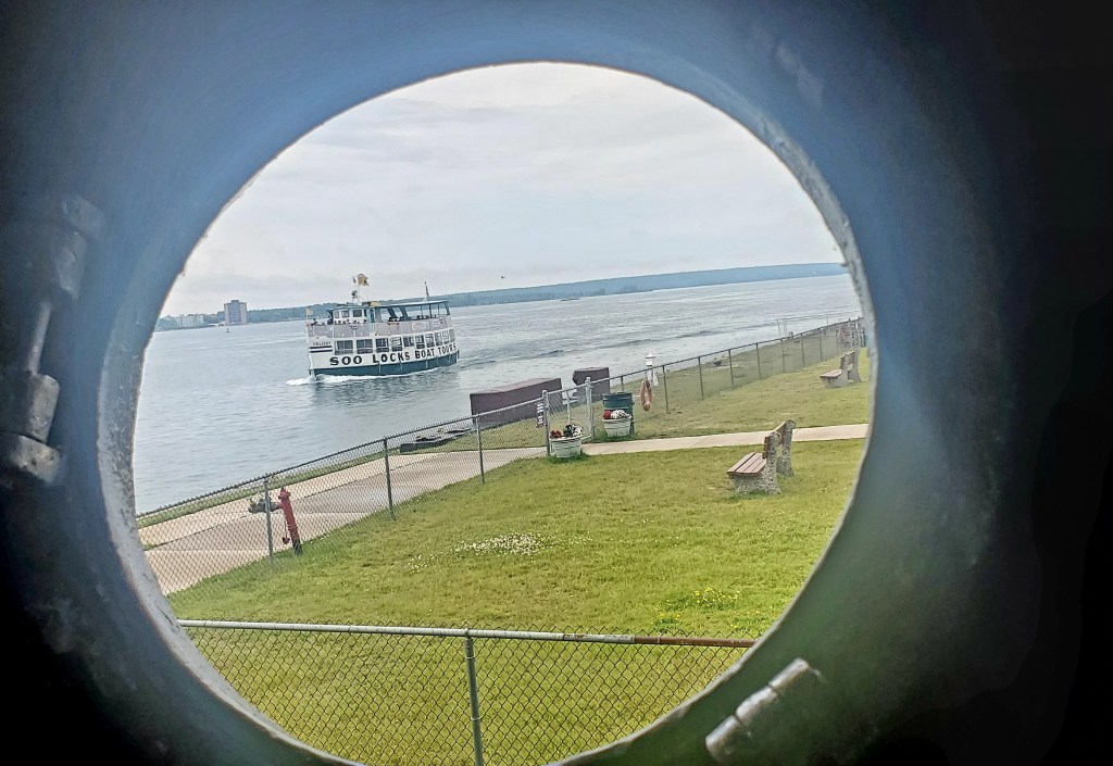 The replay began two days and 85 miles ago in DeTour Village, where we celebrated crossing the wake. It continued yesterday at Sault Ste. Marie (“the Soo”). Photos and captions below of Many Moons’ return to Lake Superior. PS: Whitefish Pt. has a fabulous museum but you won’t see it here because we visited it last year.