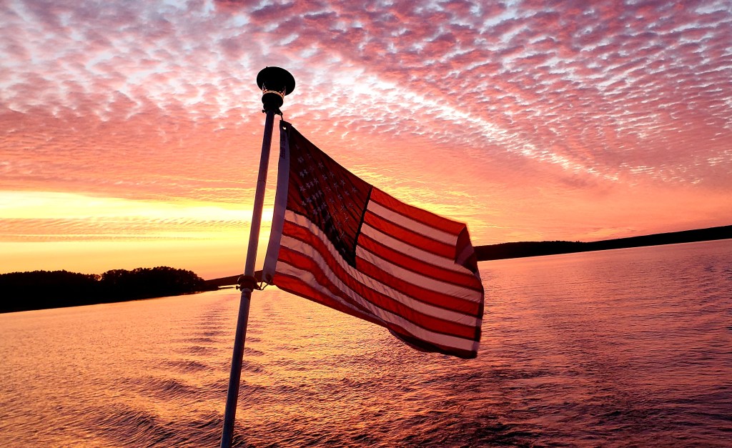 This boat has gone through three flags during this journey. They tatter pretty quickly.