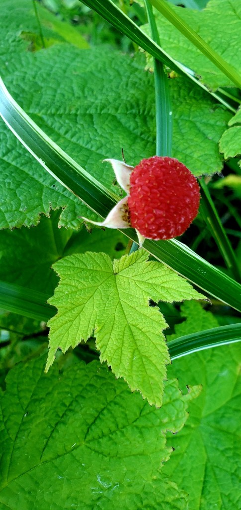 The delicate wild thimble berry is highly prized in the far-north. How thrilled I was to find one on my own land! Just one, but it’s a start!