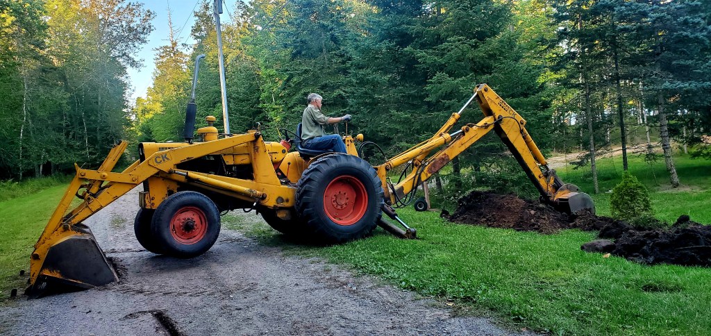 It’s hard to grow things in the far-north, which makes it hard to create the privacy screen I want. I’ve planted over a dozen shrubs (like privet) or trees (like juniper) that supposedly are deer-resistant and hardy, but most didn’t survive. It didn’t help that we were gone about a year – on the boat, doing The Great Loop — so couldn’t nurse my latest plantings through their first year. Jeff used the back-hoe to transplant five of them near the road in hopes they’ll thrive in better sun.