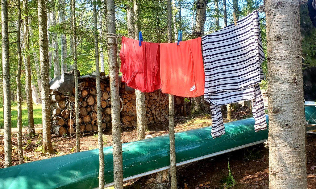 Here in the far-north, “camp” refers to a seasonal get-away. It’s really my 2nd home, since I spend several months a year here — although, without a cabin, my cold-season time is limited. It’s good to return to my land-lubber ways, digging weeds and planting things, hauling brush and trimming trees. And playing on the water rather than traveling over it.