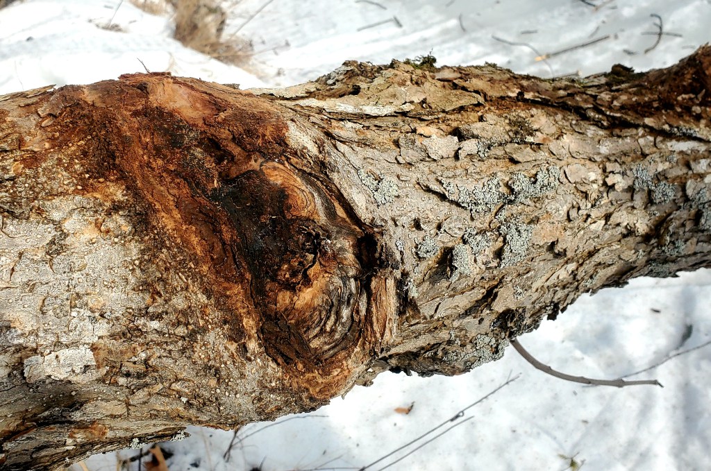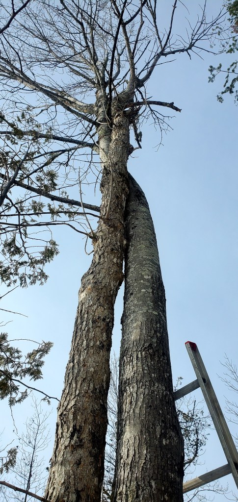 Poor elm. It hung onto the maple stubbornly, only succeeding in giving itself these “pressure wounds.” Sometimes cutting something (or someone) free is the kindest thing to do. It brings memories of some past relationships, and the painful break-ups….