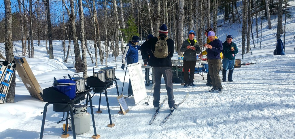 The gorging part of “Glide-‘N-Gorge.” 🙂 The fundraiser included a chili stop, offering five types to choose from. Volunteers brought all the equipment and food out on sleds.