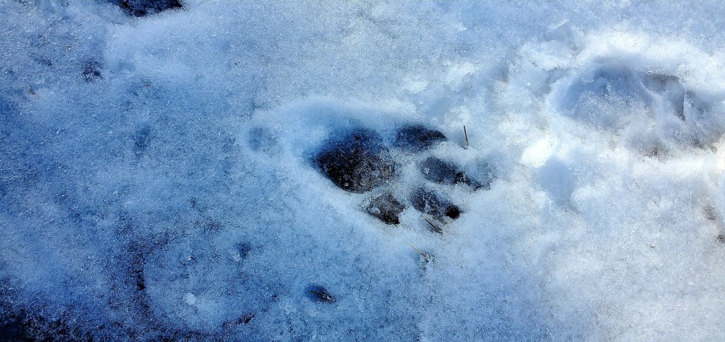 Wolf or big dog? We followed the tracks a long time and disappointingly concluded it was probably a dog.