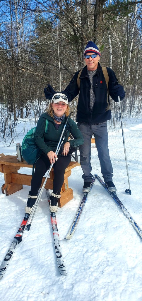 Jeff and I did just that recently, grateful that about 84% of Michigan’s Upper Peninsula is forested so there are lots of good woodland trails. Find out more about the history of gliding on skis here, and photos and captions below.