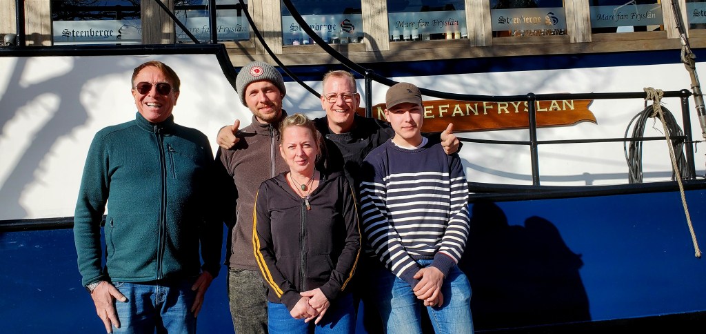 Another unknown on this trip was how sailing would be combined with biking. Our overnight lodging is the three-masted schooner Mare Fan Fryslan. (See previous post). Its 5-person crew, including a sailor-in-training, hails from Holland and Germany. The food is fabulous, the interior roomy, and the atmosphere relaxed. Sometimes the boat meets us at the next port and sometimes it brings us there.