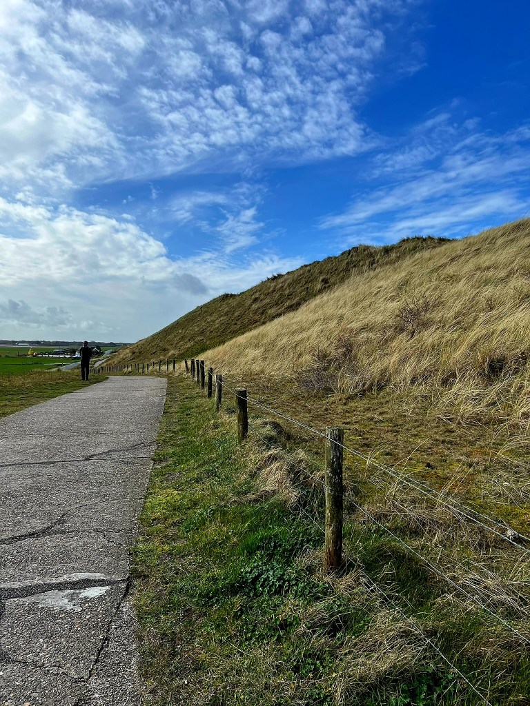 Sea grasses wave in the wind near the North Sea as we take a biking break.