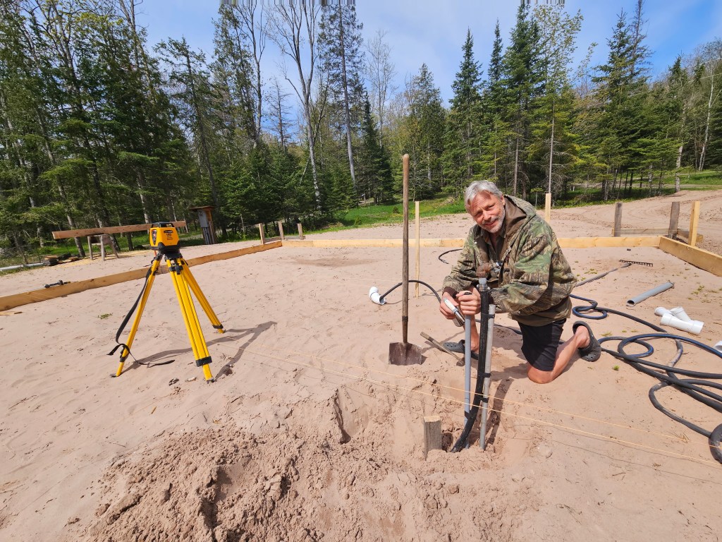 When we cleared this spot two years ago, it changed the atmosphere of my first vision – a rustic waterfront. By creating a big empty spot in the middle, I had committed to building something. Then we left for The Great Loop, and lumber prices skyrocketed, and I had trouble visualizing just what I wanted to do. But once we got a house plan nailed down this year (thanks to help from our neighbor), discussion and doubt turned into action. Jeff likes action so he’s “all-in!”