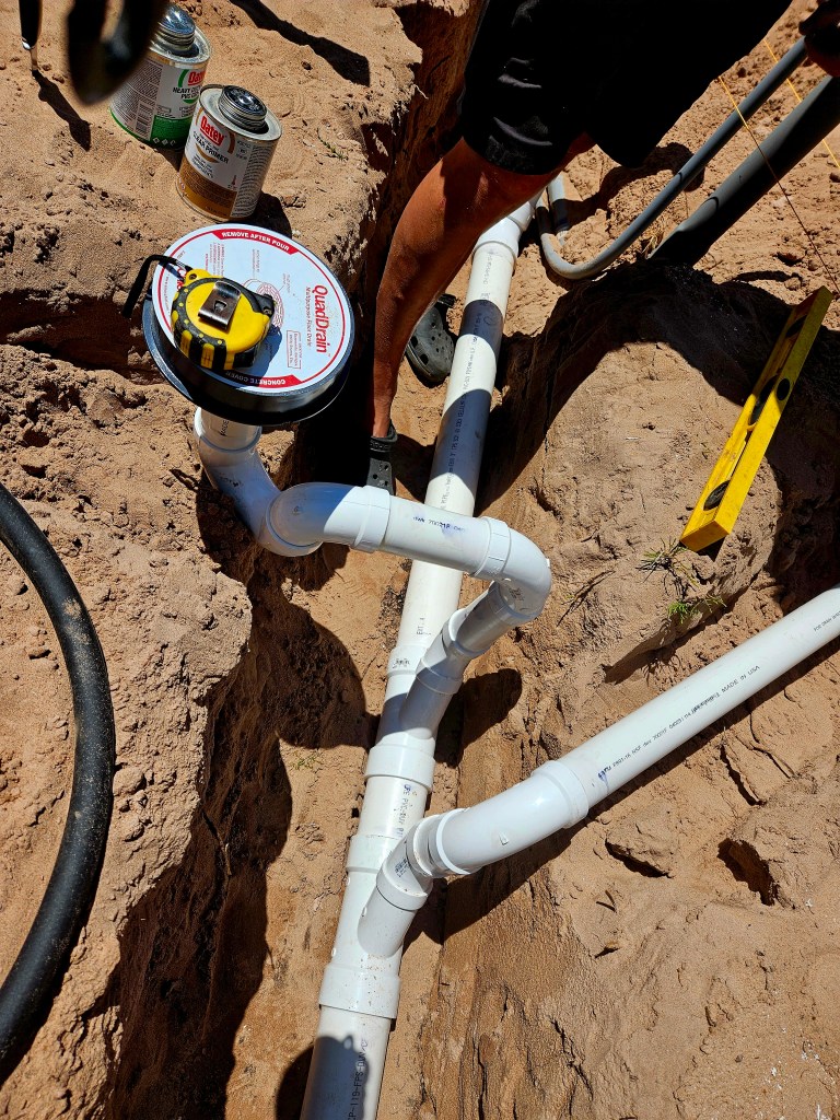 One reason we agreed to do the DIY route is because I like to see what’s underneath that we take for granted, and also help when I can. These pipes will eventually carry water in and sewage out. (We also did the septic tank and septic field ourselves. Well, mostly Jeff, but I also get into the ditch, carry stuff, and get my hands dirty.)