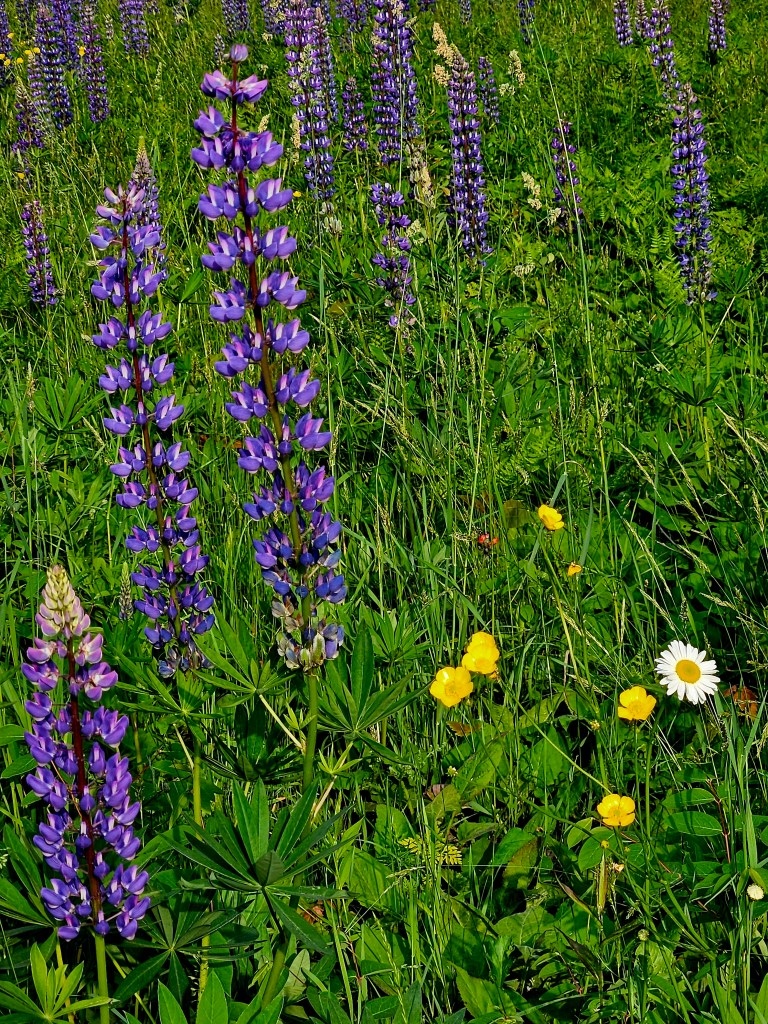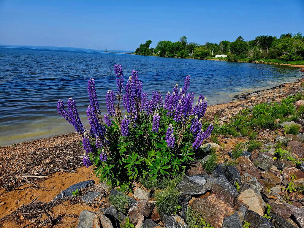 Ditches are unremarkable — except when filled with lupin, as they are right now on the roads around Keweenaw and Huron Bays. In fact, much of Michigan’s Upper Peninsula is decorated by these stately blue/purple flowers — sometimes punctuated by white or pink — which belong to the legume family. (Think peas.) Cars stop on the roadside. Facebook posts blast with blue. I smile involuntarily as I drive by them and grin when daisies or buttercups pop up among them.