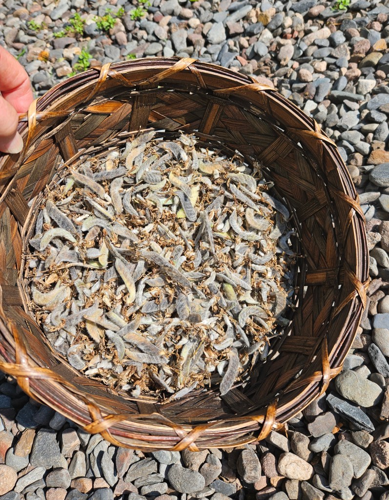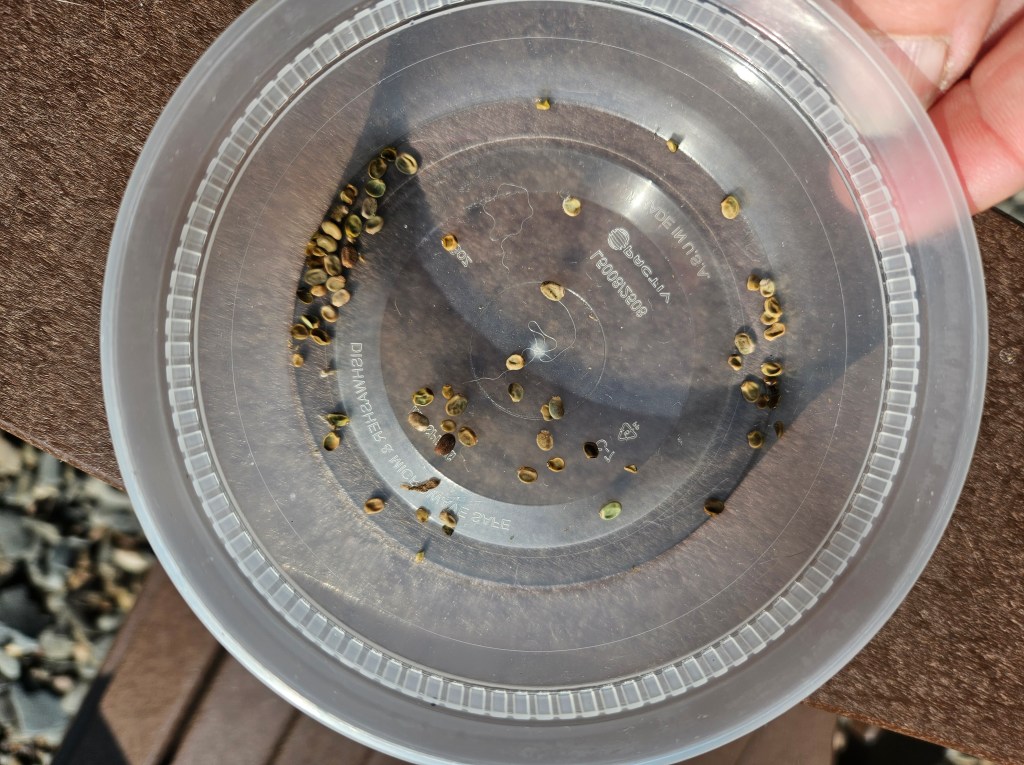 It’s painstaking to collect seeds this way, so I’m also leaving some pods on their stalks, in a paper bag, in hopes they’ll open on their own and the seeds will fall to the bottom of the bag. I’m chuckling to remember my time-consuming attempt to harvest and plant cedar seeds. The harvesting went well, but the planting yielded zilch. Hoping this experiment will go better!