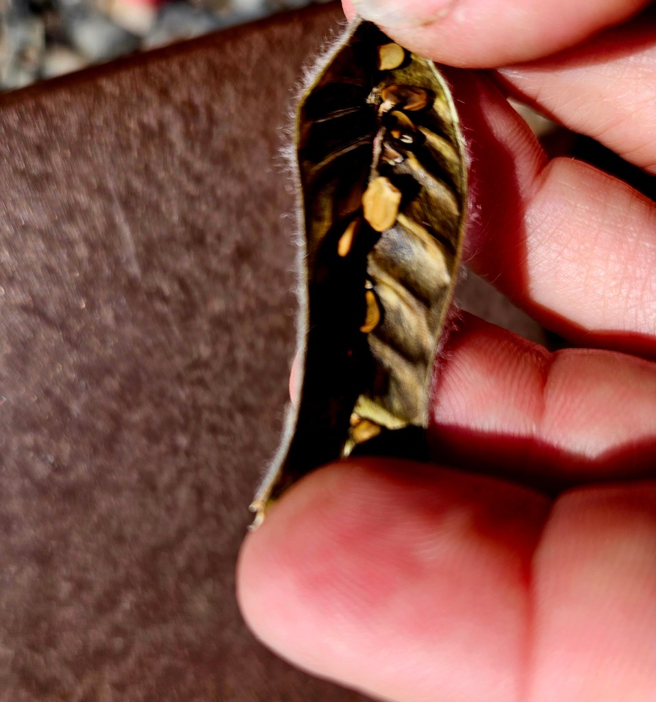 When I grow bored with construction tasks or sore from tree-trimming, I move to other pursuits such as trying to propagate the local lupin. Gorgeously purple a few weeks ago, they are now brown and ready for pod-plucking.