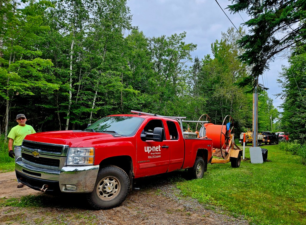 While I was hanging the laundry, the local phone company was laying fiber optic cable alongside my lot. “Non-compute!” as we used to say in college when something was hard to absorb. (Computers were just arriving in our lives then…the old “punch-card” kind.) Rustic meets high-tech! The conduit-laying process is itself a testament to technology. It’s laid a few feet deep — or several — by using a computerized drill. The drill operator sends it exactly where he wants it to go, sometimes several hundred feet along a horizontal underground track. (Notice the ball cap! :))