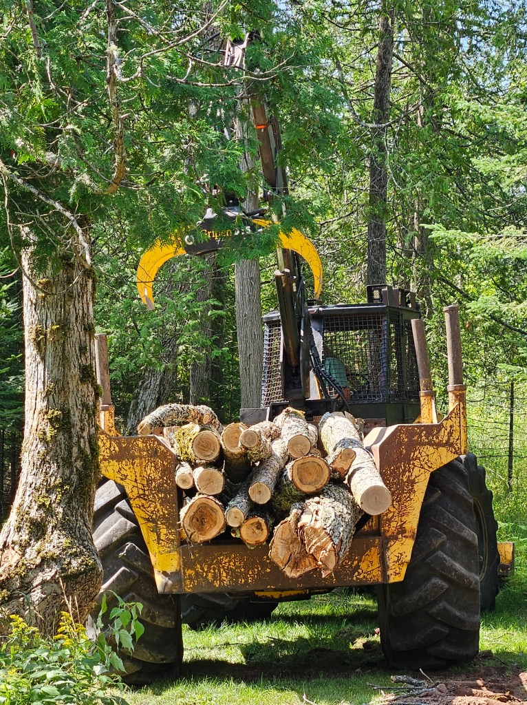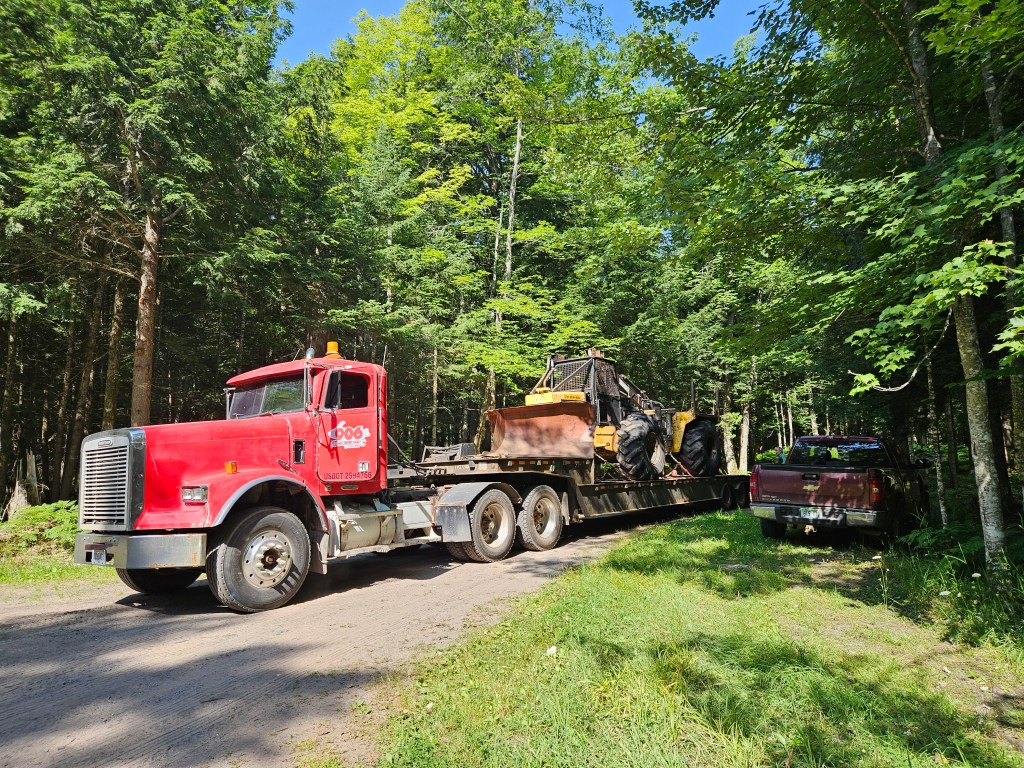 It’s called an Iron Mule. It hauls logs. (In the winter, it can also plow snow.)