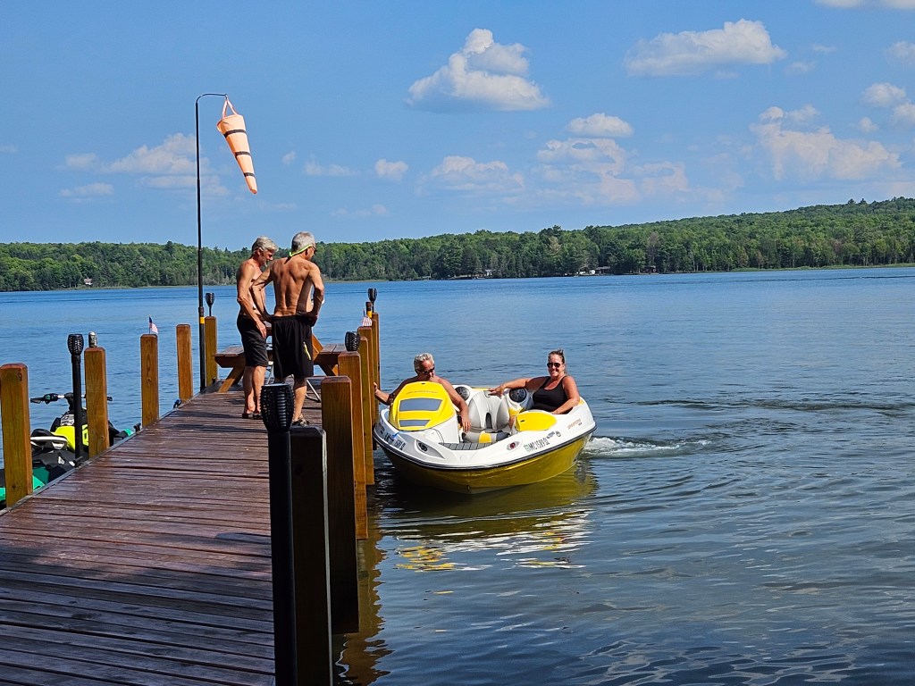 You’ve heard the saying about “all work and no play?” We took a break for a spin on a neighbor’s jet ski and a visit by Jeff’s brother in his cute little jet-boat.