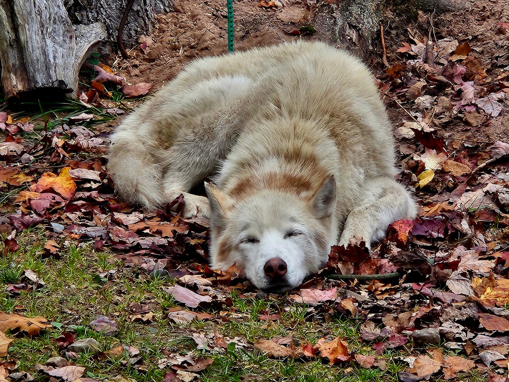 Roscoe naps less in cool weather than he does in summer, but I caught him taking one. 🙂 I take him with me during my runs to town because he loves car rides almost as much as his walks.