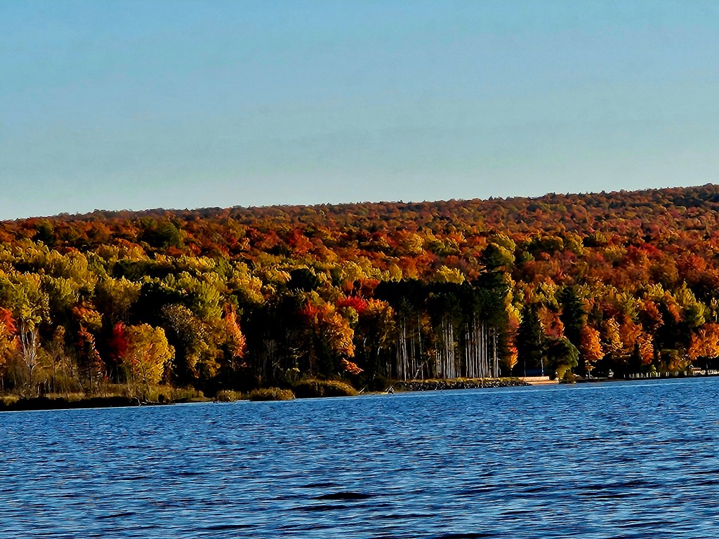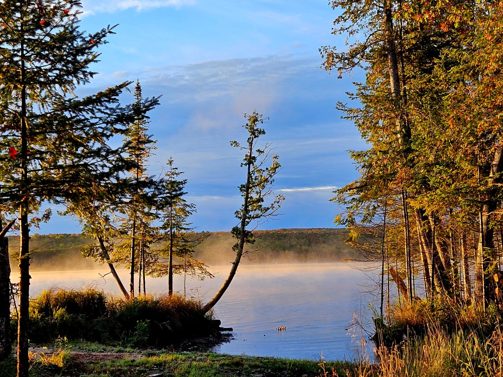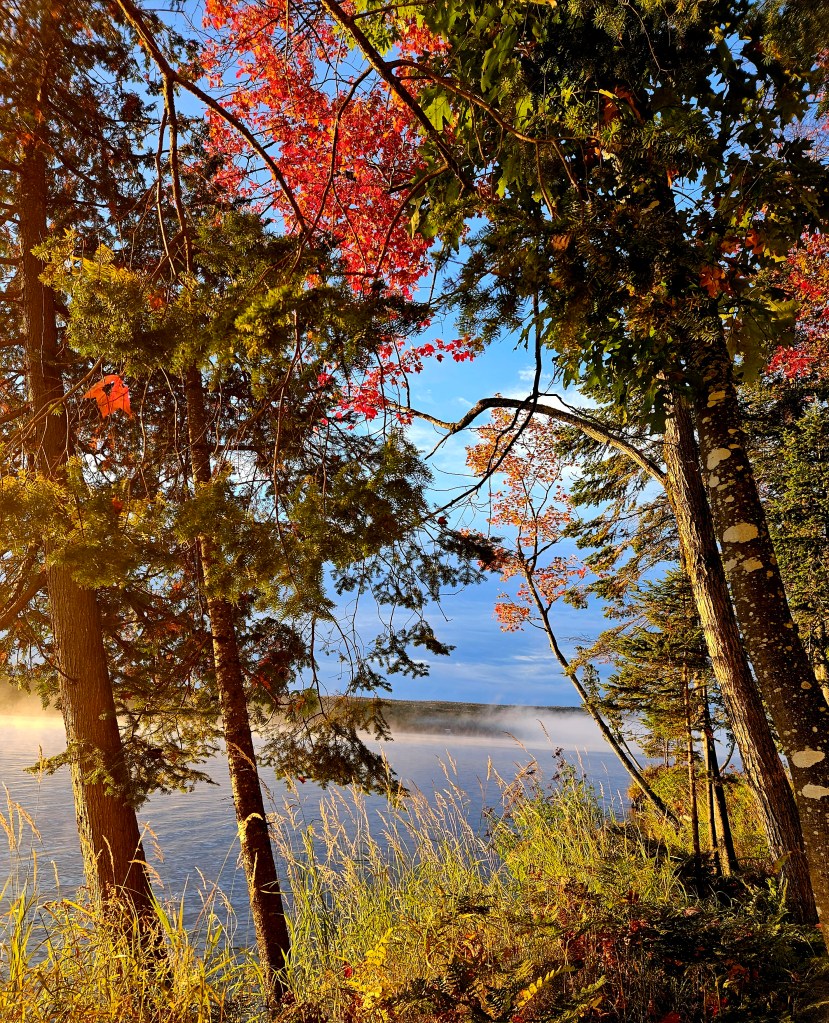 While building my house on Huron Bay, we live in a trailer. I call it a camper. So I guess we are “camping” — even though, in my experience, camping requires a tent. I’ve been living this way for several months a year, over 4-5 years. I love camping, whether by tent or trailer. In summer, it works great because I want to be outdoors anyway. Autumn is a different story, as nights grow long and temperatures go low. Trailers are basically tin boxes with no insulation and practically no storage. Mine is pretty small and hard to keep clean and organized, especially when two people are coordinating a huge project. (Which is why you won’t see indoor pictures!) Longer nights mean more time inside the tin box. Yet there are gifts! Mother Nature has been pretty stingy with sun in recent weeks, but today was glorious. I’m sharing below some local autumn photos on our few sunny days — even more precious for their rarity.