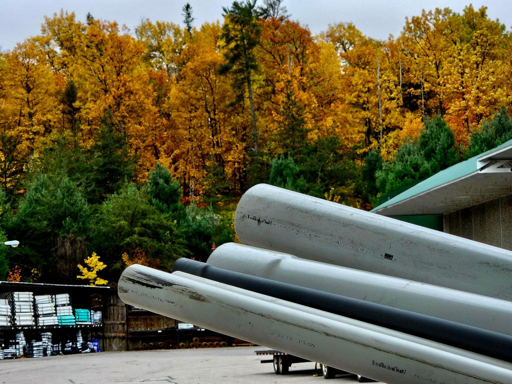 Meanwhile, Jeff and I made another shopping trek for electrical and plumbing supplies, including this pipe that will carry water (and sewage) in and out. We spent three hours at the home improvement store, both indoors and out, going through a complex list. (A contractor or builder would take care of this stuff. If we had one. )