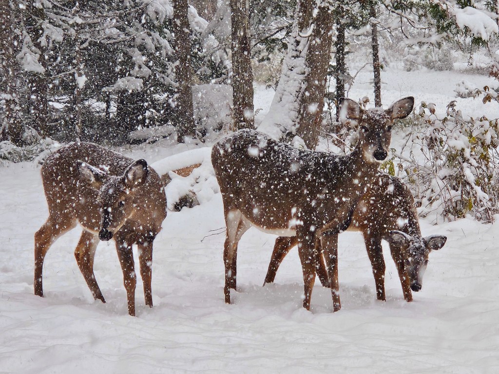 Four deer ambled into Camp Many Moons. In the midst of transition kerfuffle, they made me smile. Our neighbors, who feed them, are gone for awhile so we’re putting out corn for “their pets.” They also eat things I don’t want them to eat, like my new plants, but they’re still cute….