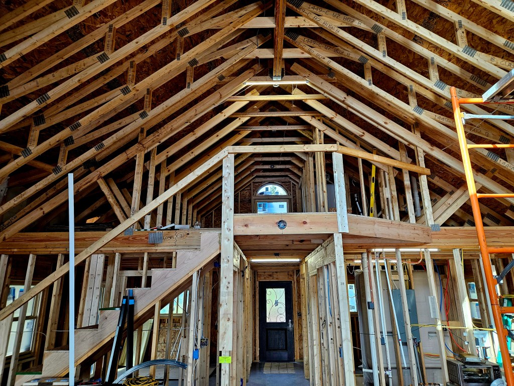 This is what it looks like from the living area down below. It’s all wood framing now…insulation and sheet-rock to come.