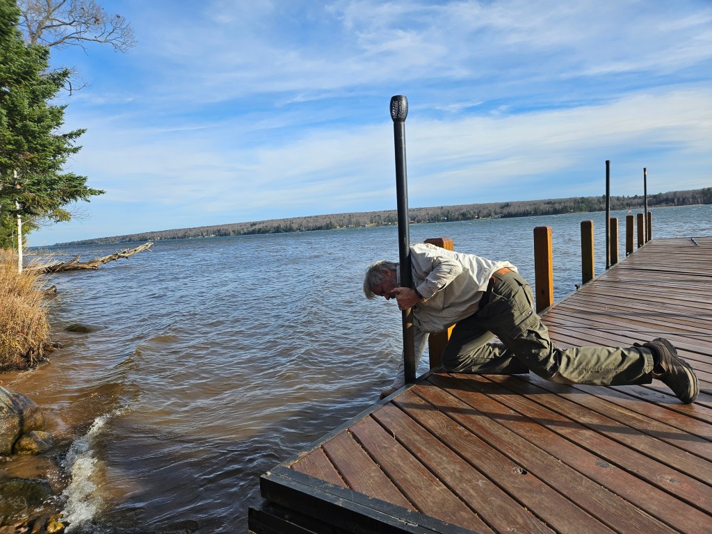 It’s all about preparing for winter now, both indoors and out, at Camp Many Moons on Huron Bay in Michigan’s U.P. Today, the dock came out of the water as insulation went into the house. I’m sad to pull the dock but excited to receive insulation!
