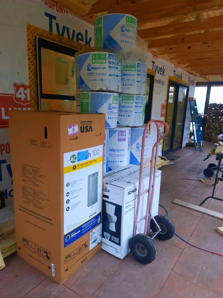 Still, we continue to work together on the Cabin at Many Moons. After all, “remote working” is the thing these days! We’re on the phone daily. Research and choices continue. While he’s in the building supply store, I’m on-line to find the right water-heater and toilet. I confirm they’re in stock and hit “Purchase.” Minutes later, he picks them up. Hours later, they’re at the house. Little by little, progress continues…