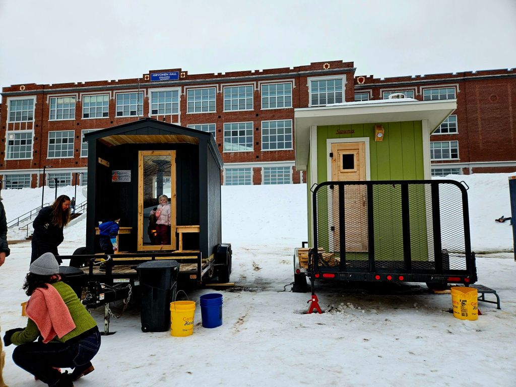I’m back at Camp Many Moons in Michigan’s Upper Peninsula, where wild turkeys waddle out of my path and deer bolt across it. I hear coyotes at night and see evidence of a wild kill underfoot. And where is my attention? On toilets and paint colors, as we continue the slow progress to turn a house into a home. In the 10 days since my return, we took one day to celebrate a uniquely Finnish-American winter festival in my hometown. All the others have been focused on more decisions for the DIY home-builder — and admiring the flush toilet! The story below….