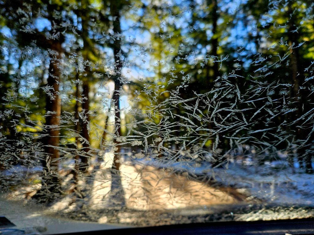 Meanwhile, winter still eludes us here on the 47th parallel. Though I did have pretty frost patterns on my windshield during the short drive to the waterfront this morning.
