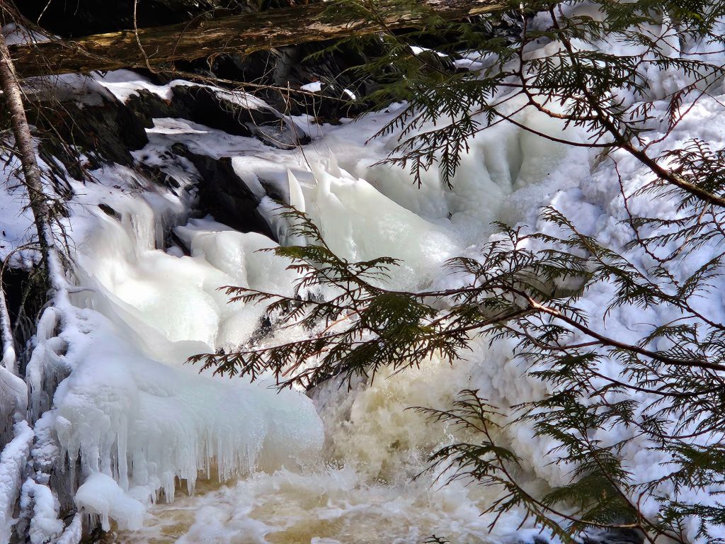 On Sunday, we joined a group hike to waterfalls on the nearby Silver River. The mix of ice and water made for intriguing visuals.