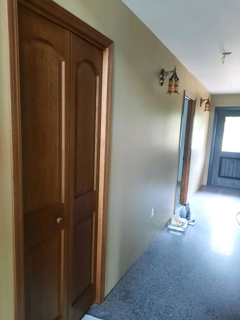 He installed shelves in the “mudroom” closet and added a bar. These aren’t exciting steps, but you can see how much work is involved in a DIY house-building project. All of you who moved into a ready-made home…did you ever imagine all these steps? Probably not. I didn’t, either.