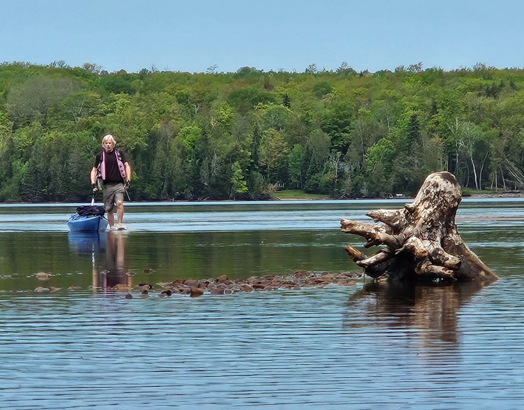 We did get out together in kayaks. The water was so low that Jeff hit a sandbar where there usually isn’t one. Looks like he’s walking on water here, doesn’t it!