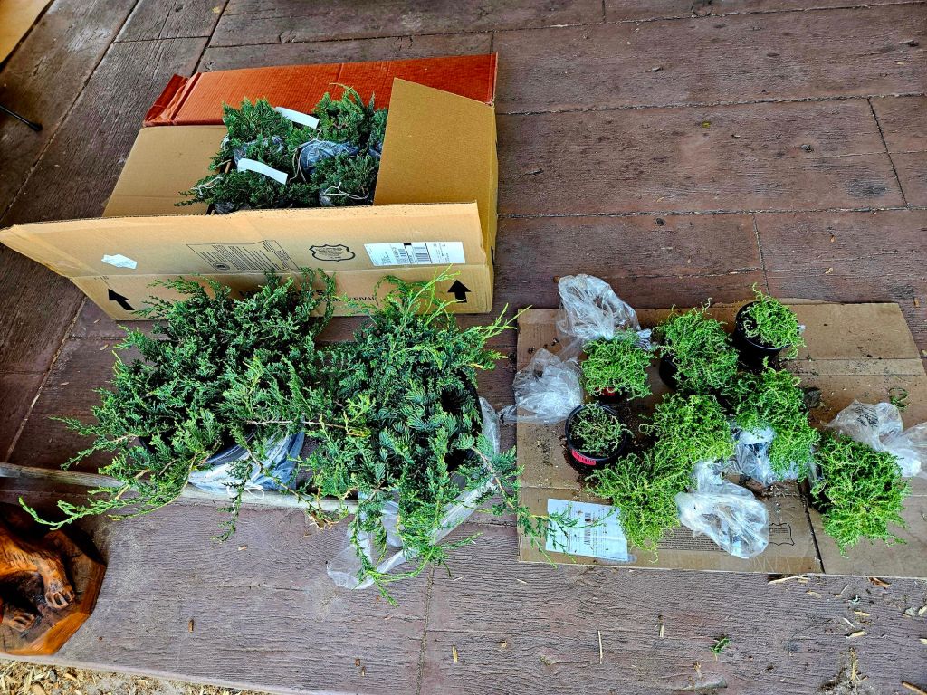 I’ve also focused on planting. That’s juniper on left and sedum on right–both low-growing groundcover. Sixteen plants, by mail-order. Fairly costly. They arrived in great shape except for one, which the company will replace.