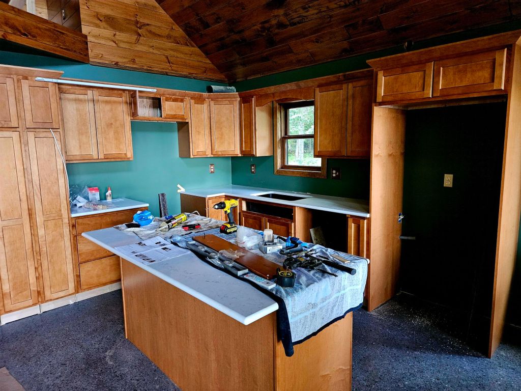 As DIY continues on Huron Bay, Jeff installs the cabinet lighting and glues countertops while I plant. The story in photos and captions below.
