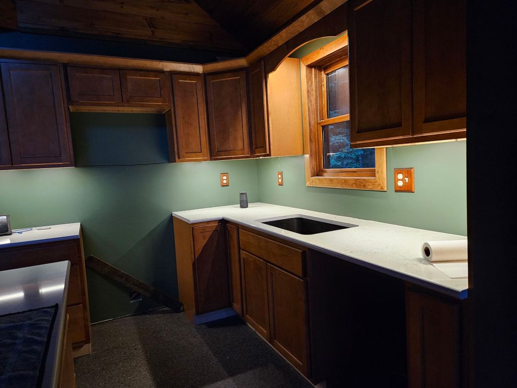 I like the final effect, and it’s also a relief they work so well since we have no sink light. (A pendant will light up the island.)