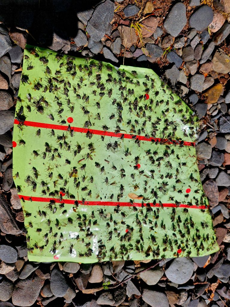 …but the fly traps work better. I have at least four of these in strategic places, and they hold thousands of flies. Maybe tens of thousands? Gross but effective!