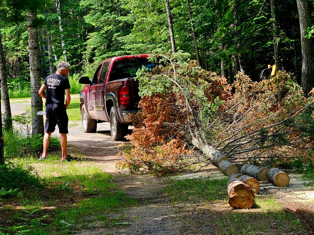 Building new stuff is one task. Maintaining old stuff is another. We’re doing both at Camp Many Moons on Huron Bay as we build a new house while battling trailer limitations, rain effects, and insects. (They have the right to exist. They feed other forms of life. I know this. I just wish they didn’t have to exist on my body! 😉 ) The ongoing story in photos and captions below, as Jeff creates steps and I…well, read on…