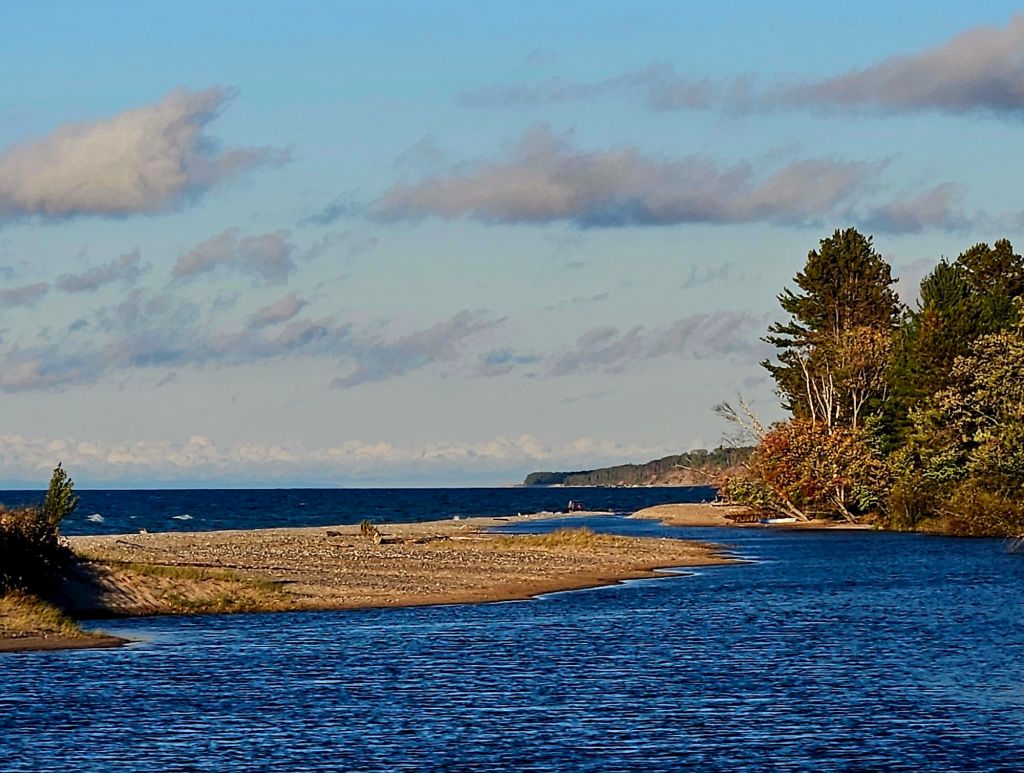 First stop: a place we’ve been wanting to see for years. The Two-Hearted River, made famous by Ernest Hemingway, on the south shore, four hours from Camp Many Moons and Huron Bay. We took a windy dirt road to get there. This is the mouth, where the river empties into Gitchee Gumee (the native name for Lake Superior).