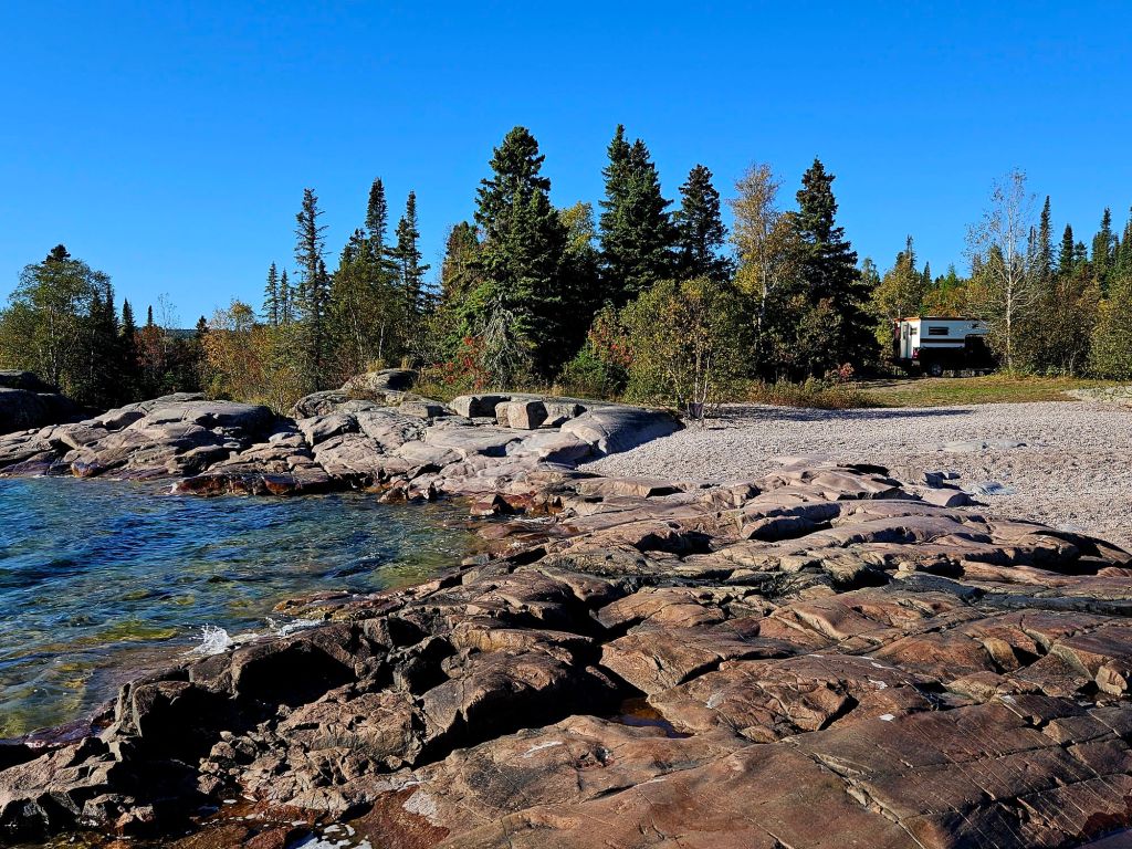 Sunset was glorious. I’m standing about 60 feet from the camper while taking this pic. I’ve been eager to visit Lake Superior’s famed North Shore and, wow! We live on the south shore, which is more settled even though most people think of the Upper Peninsula as remote. And it is, compared to most of the U.S. But this is even more so.